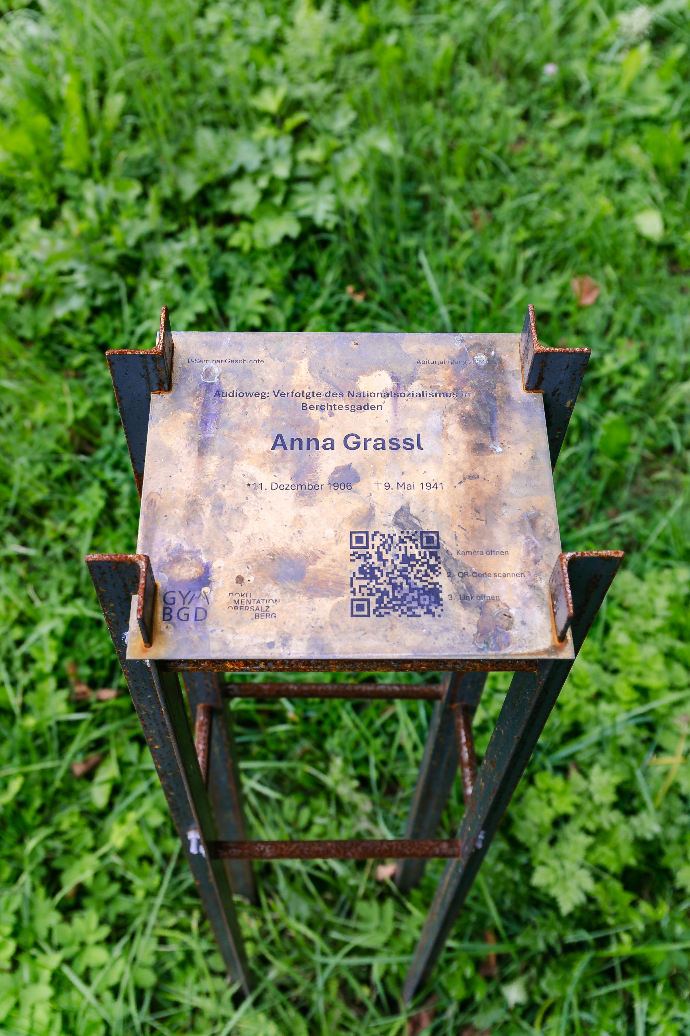 Ein eindrucksvoller, rund einstündiger Spazierweg zwischen Königssee und Schönau lädt dazu ein, sich auf eine besondere Form der Erinnerung einzulassen. An vier Stationen erinnert der Audioweg an Menschen aus der Region, die im Nationalsozialismus verfolgt wurden. Über QR-Codes an den metallenen Stelen lassen sich Audiobeiträge abrufen, die die Lebensgeschichten von Anna Grassl, Dora Reiner und der Familie Moderegger erzählen. Diese Menschen und ihre Schicksale stehen exemplarisch für die nationalsozialistische Verfolgung in der Region. An den Orten ihres Lebens und Wirkens in Schönau am Königssee laden die Stelen zum Innehalten und Erinnern ein.